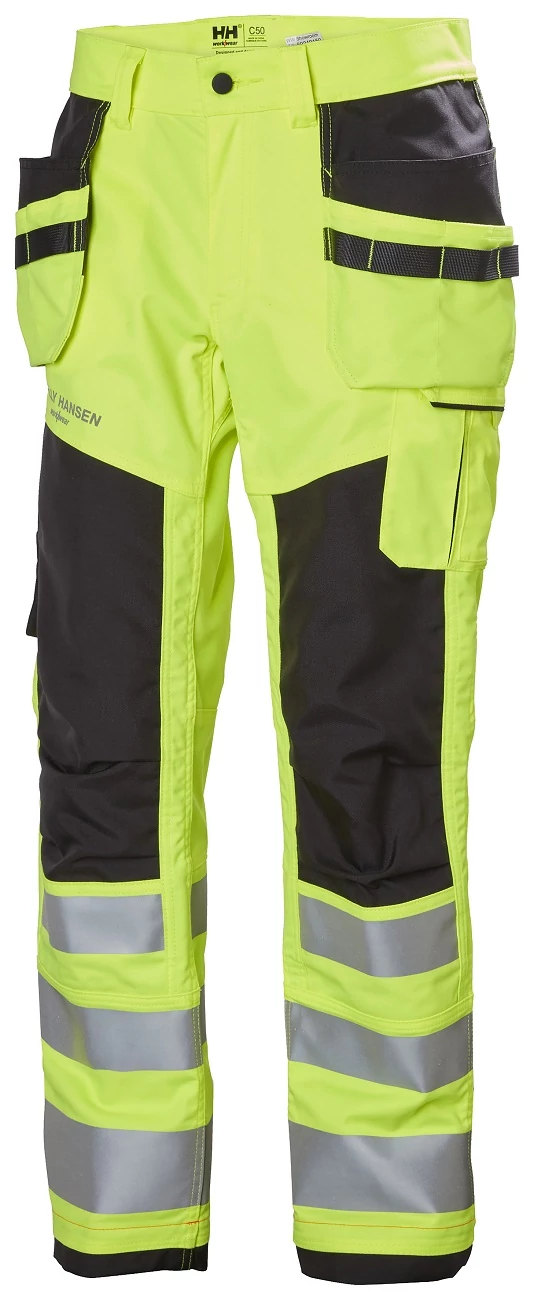 Az Alna Construction Pant 2.0 Class 1 rugalmas anyagának és felvasalt fényvisszaverőinek köszönhetően kényelmesebb viseletet és jobb láthatóságot nyújt, így biztonságban és kényelemben dolgozhatsz egész nap.